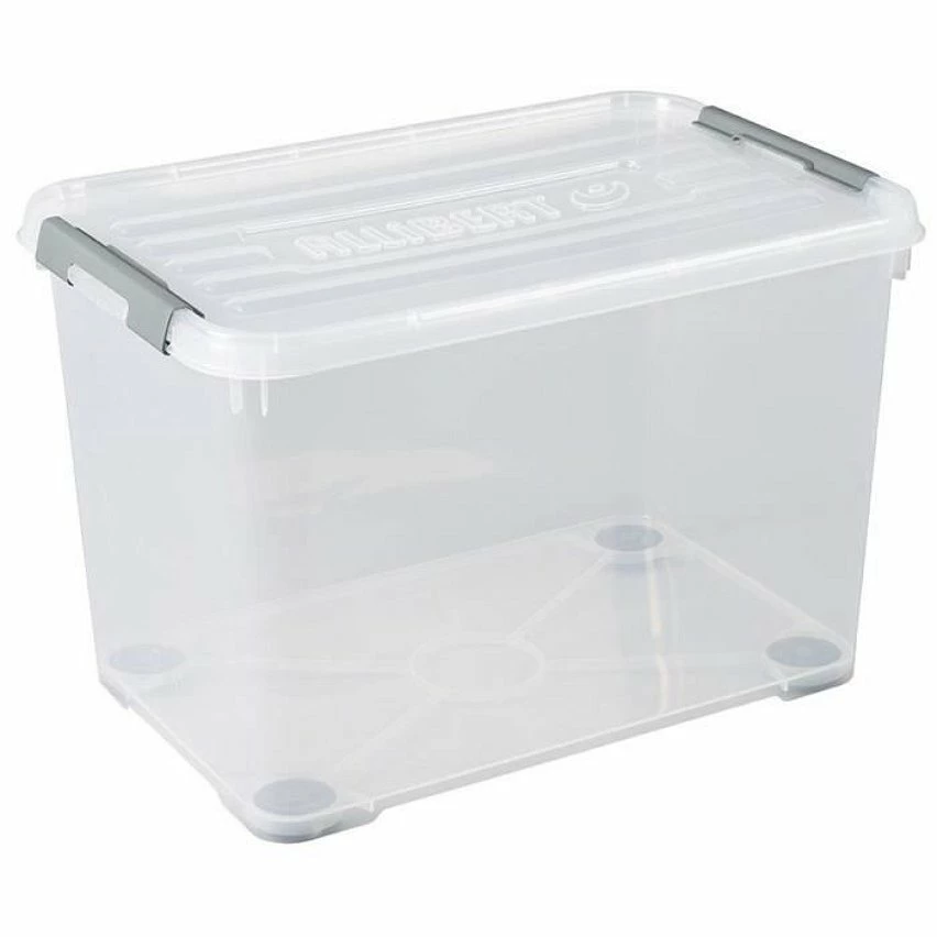 ALLIBERT Boîte de rangement Handy Plus – Avec clips gris – Couvercle transparent et roue – Capacité : 65 L.