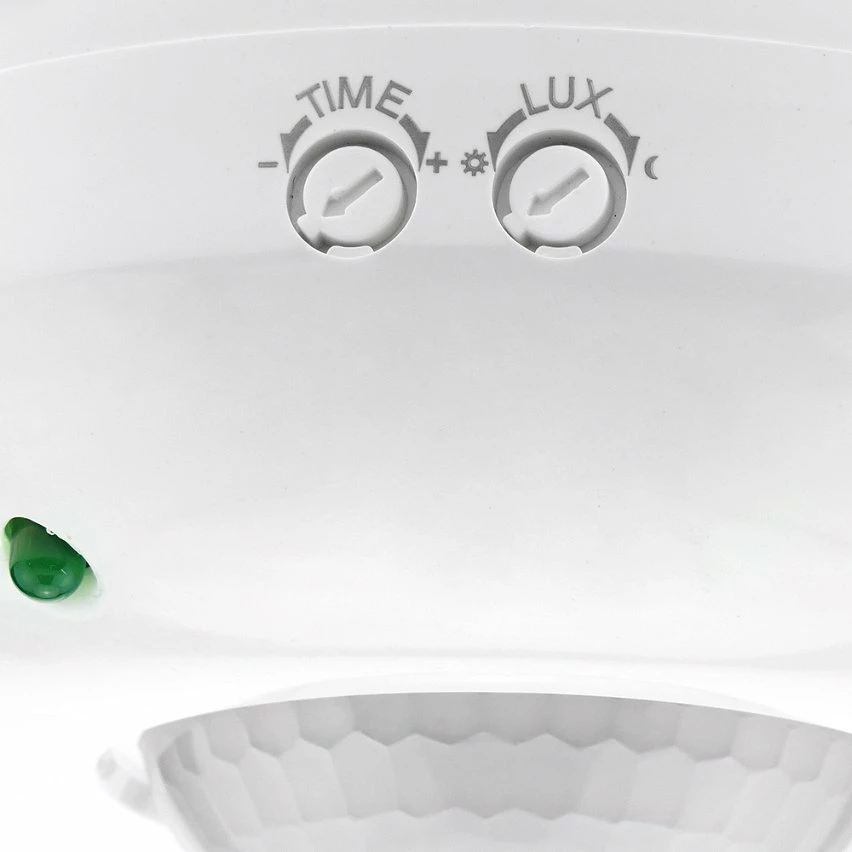 Détecteur de mouvement infrarouge. Détecteur fixé au plafond. Détection nécessitant tout mouvement dans la zone de détection. Il agit comme un interrupteur, de sorte que lorsqu’un mouvement est détecté, il ferme le circuit (active l’interrupteur). Les applications peuvent être nombreuses: activation de l’éclairage, sécurité, sonnettes, etc. spécifications Détecteur de mouvement infrarouge. Capteur crépusculaire. Alimentation 220-240 VAC à 50 Hz. Lumière ambiante réglable de 3 LUX à 2000 LUX, configurable par potentiomètre. Temps de mise en marche (temps d’activation) de 1 seconde à 10 secondes, configurable par potentiomètre. Hauteur d’installation de 2 m à 6 m. Angle de détection de 360 °. Distance de détection de 6 m maximum. Protection de l’environnement IP20. Connexion interne à 3 bornes (2 entrées et 1 sortie). Vitesse de détection de 0,6 à 1,5 m / s. Consommation: 0,45 W.