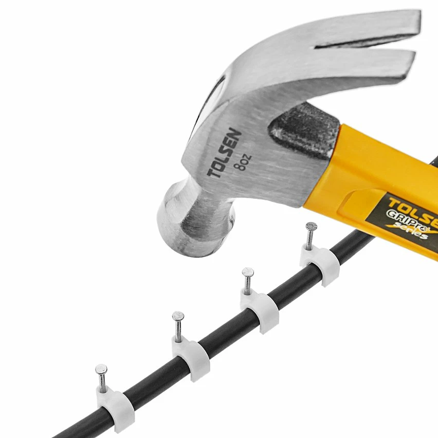 Agrafe pour la fixation des câbles ronds. Clou pour la fixation et la canalisation des câbles en surface. Clou en métal qui combine une pince en plastique blanche. Compatible avec les câbles électriques, données, téléphone, audio, etc. Spécifications Agrafe pour la fixation des câbles ronds. Pack de 20 unités. Clou pour la fixation et la canalisation des câbles en surface. Clou métallique qui combineune pince en plastique blanche. Compatible avec les câbles électriques, données, téléphone, audio, etc. Agrafe avec clou, pour câble rond (tuyau). Calibre 7. Diamètre du câble: 6 mm.