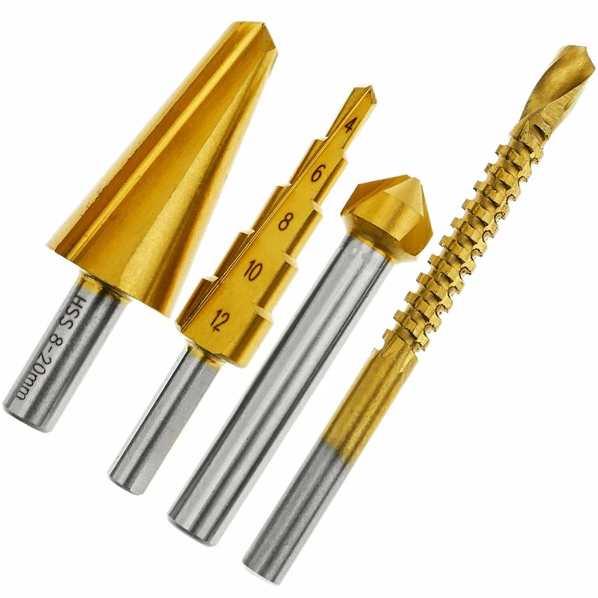 Perceuse pas à pas pour perceuse et meuleuse. Kit de 4 pièces hélicoïdales et pour travaux spéciaux. Idéal pour percer des trous avec une grande précision et pour des applications spéciales. Spécifications Perceuse pas à pas pour perceuse et meuleuse. Kit de 4 pièces hélicoïdales, fraisées et pour travaux spéciaux. Idéal pour percer des trous avec une grande précision et pour des applications spéciales. Comprend 4 pièces: (1) foret conique 8-20, (2) foret conique de 5 à 12 mm, 5 étapes, (3) fraise conique de 12,4 mm et (4) foret d’épandage de 6 mm. Métal à haute résistance, pour le perçage à grande vitesse.
