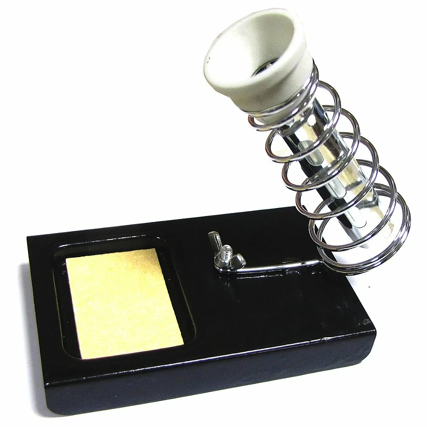 Support de soudeur avec une base en métal et une pointe de support en céramique pour résister à des températures élevées. Comprend une éponge anti-thermique pour nettoyer les pointes.