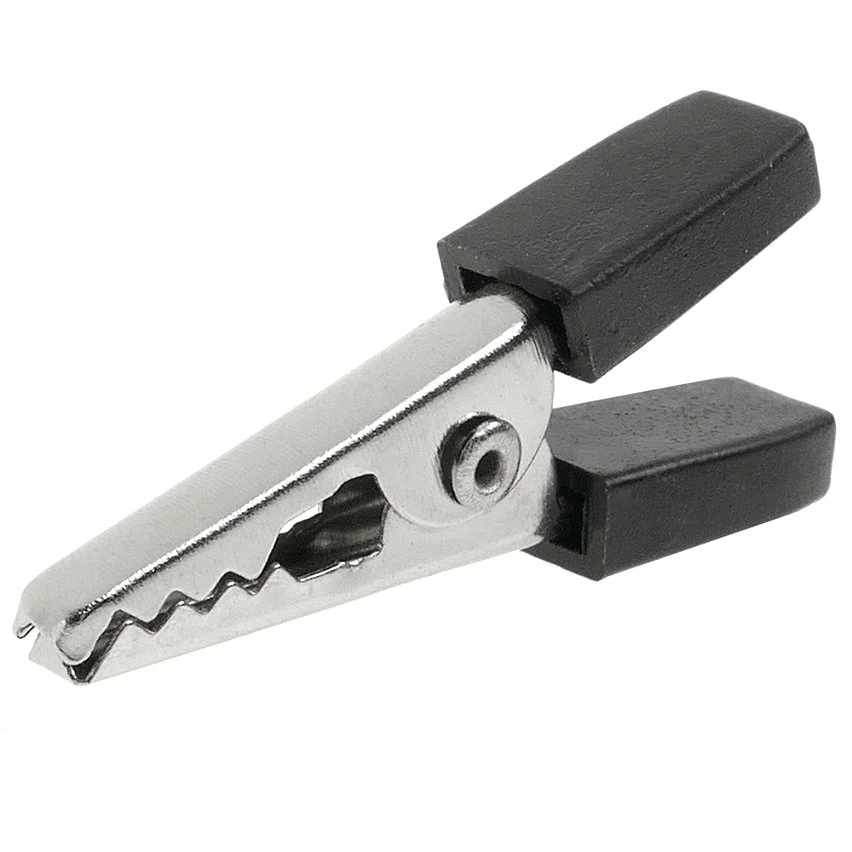 Pince crocodile avec protection en caoutchouc contre les chocs électriques. Idéal pour effectuer des connexions électriques facilement et rapidement, avec une protection totale. Étui en silicone noir qui protège les manchons métalliques de la pince. Spécifications Pince crocodile avec gaine protectrice sur les manches, qui protège contre les chocs électriques. Idéal pour effectuer des connexions électriques facilement et rapidement, avec une protection totale. Etui en silicone noir protégeant la partie métallique du clip. Taille: 34 x 16 x 6 mm.
