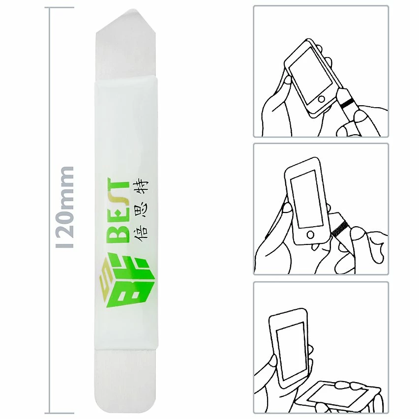 Levier permettant de monter ou de démonter des appareils électroniques tels qu’un smartphone, une tablette, un ordinateur portable, etc. Fabriqué en acier avec une couche mince pour éviter d’endommager ou de rayer les composants nécessaires au montage ou au démontage. Outil du fabricant reconnu BEST. Spécifications Levier pour monter ou démonter des téléphones portables, des ordinateurs portables, etc. Comprend deux conseils pour s?adapter à différents typeset les formes. Longueur des leviers 120 mm. Largeur des pointes 19 mm. Fabriqué en plastique et mince couche d’acier de haute résistance et qualité.
