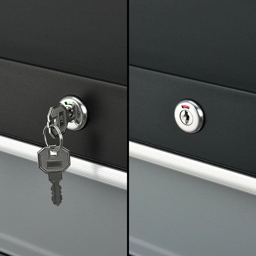 Le chariot à outils vous permettra d’avoir un garage ou un atelier bien organisé. Les tiroirs sont verouillables, donc lors du transport du chariot, ils s’ouvrent pas. Il est facile à faire déplacer ce meuble de rangement à l’aide des 4 roulettes dont deux possèdent des freins.