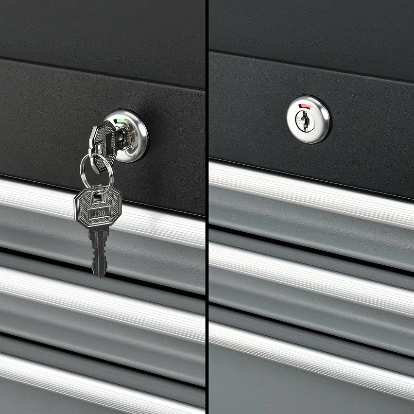 Le chariot à outils vous permettra d’avoir un garage ou un atelier bien organisé. Les tiroirs sont verouillables, donc lors du transport du chariot, ils s’ouvrent pas. Il est facile à faire déplacer ce meuble de rangement à l’aide des 4 roulettes dont deux possèdent des freins.