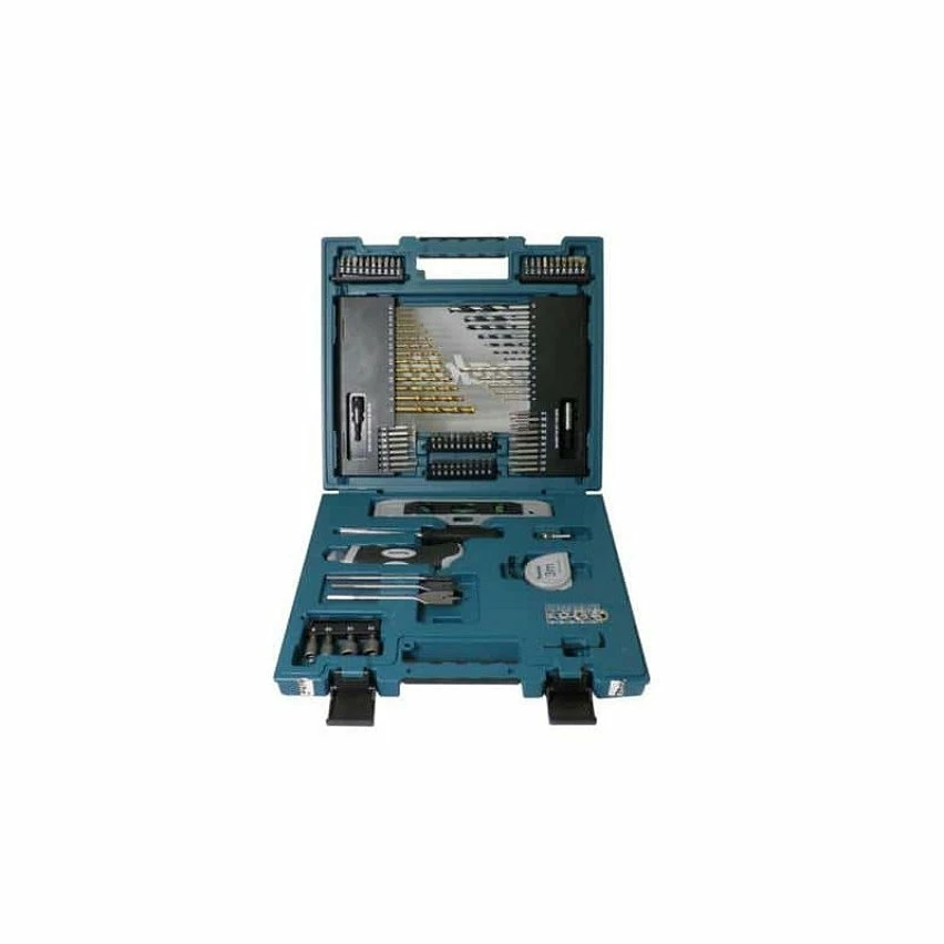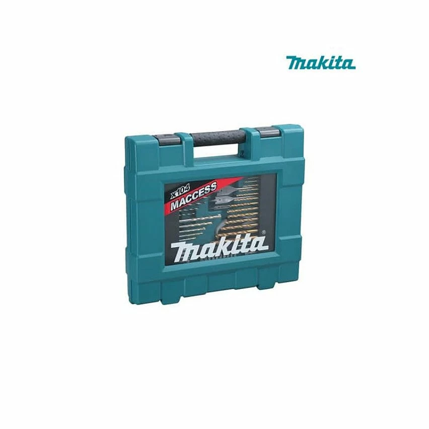 Présentation : Coffret à outils MAKITA 104 pièces MACCESSX104 D-31778 comprenant des forets (bois, béton métal), embouts, douilles de vissage, un niveau, un mètre de 3m et bien d’autres… La parfaite panoplie pour tous les bricoleurs ! Caractéristiques :Coffret comprenant18 embouts longs 50 mm Pozidriv, Philips, Torx40 embouts courts 25 mm Pozidriv, Philips, Torx, plat5 forets à béton diamètre : 3/4/5/6/8 mm14 forets à métaux diamètre : 1,5 /2 / 2,5 / 3 / 3,5 / 4 / 4,5 / 5 / 5,5 / 6 / 6,5 / 7 / 8 / 10 mm7 mèches à bois diamètre : 3/4/5/6/7/8/10 mm3 mèches à bois plates diamètre : 8/15/20 mm1 gabarit4 douilles à queue1 fraise à métaux1 porte-embout à bague de verrouillage emmanchement 1/4 »1 porte-embout magnétique emmanchement 1/4 »4 butées de profondeur1 clé hexagonale1 tournevis à emmanchement 1/4 »1 cutter avec 7 lames de rechanges1 mètre ruban 3 m1 niveau à bulle.Dimensions du coffret : 41 x 31 x 6 cmPoids : 4 kg Conditionnement : Ensemble d’outils conditionné dans un coffret vert Makita