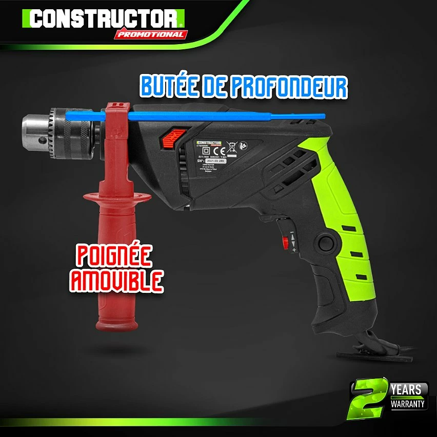 Capacité de perçage: bois 25mm – acier 10mm – béton 13mm