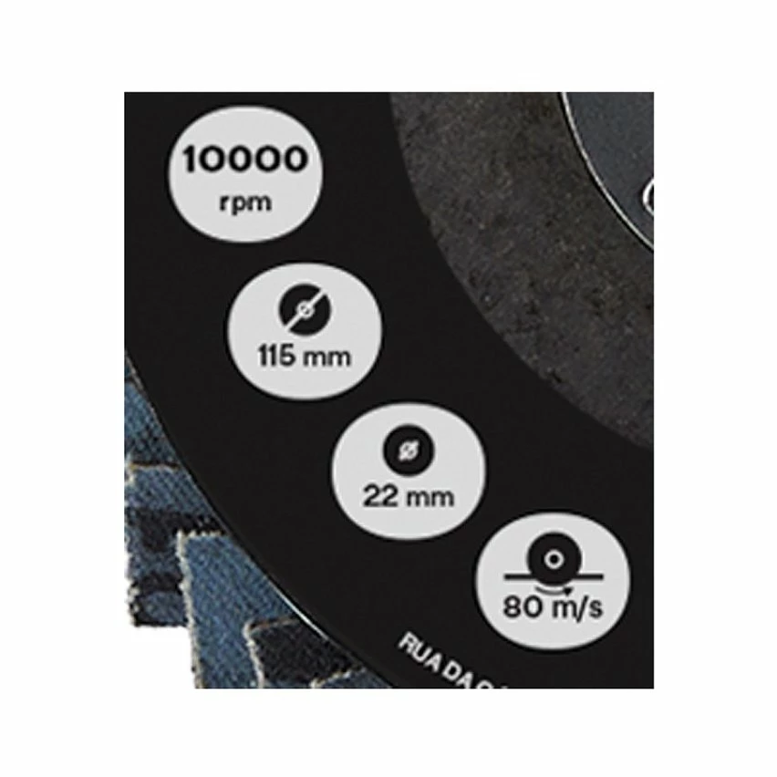 Disque à lamelle VITOPOWER zirconium, diamètre de 115 mm, un alésage de 22 mm et un grain de 80. 80 m/s