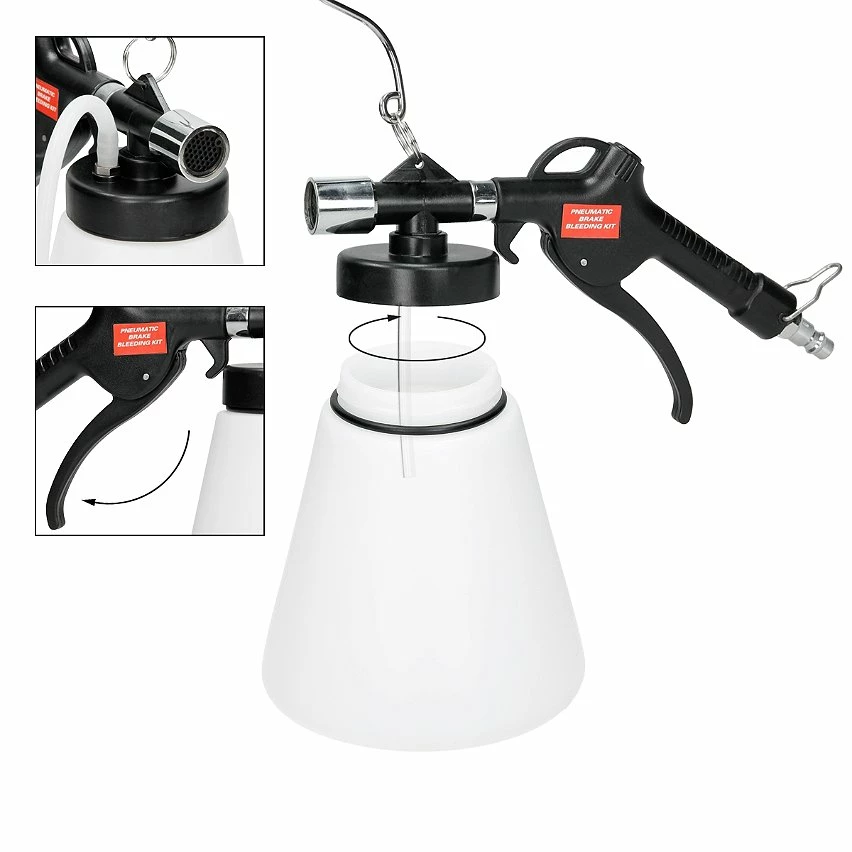Cet outil professionnel spécial automobile est parfaitement adapté à la purge des freins dans tous les foyers. Cet outil vous permet de purger le système de freinage de manière professionnelle, rapide et fiable. Le mamelon de 1/4 de pouce inclus dans la livraison peut être utilisé sur tous les modèles de véhicules courants conformément aux normes européennes.
