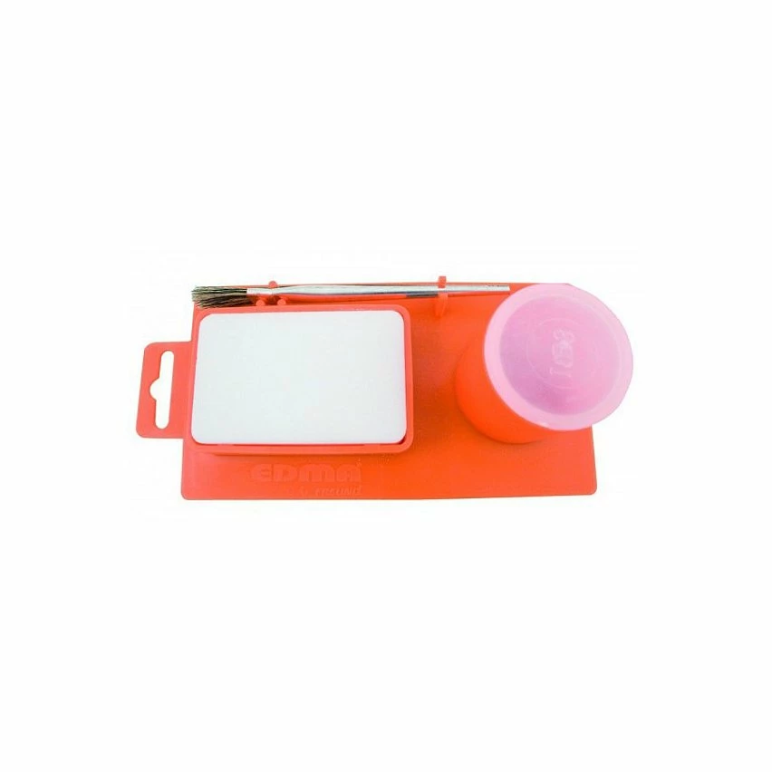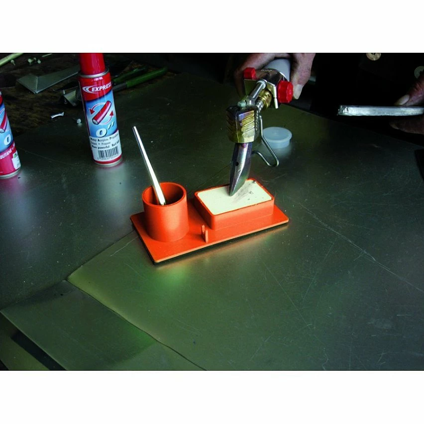 - Pierre à souder au sel d’ammoniaque, pinceau de décapage et récipient en plastique.