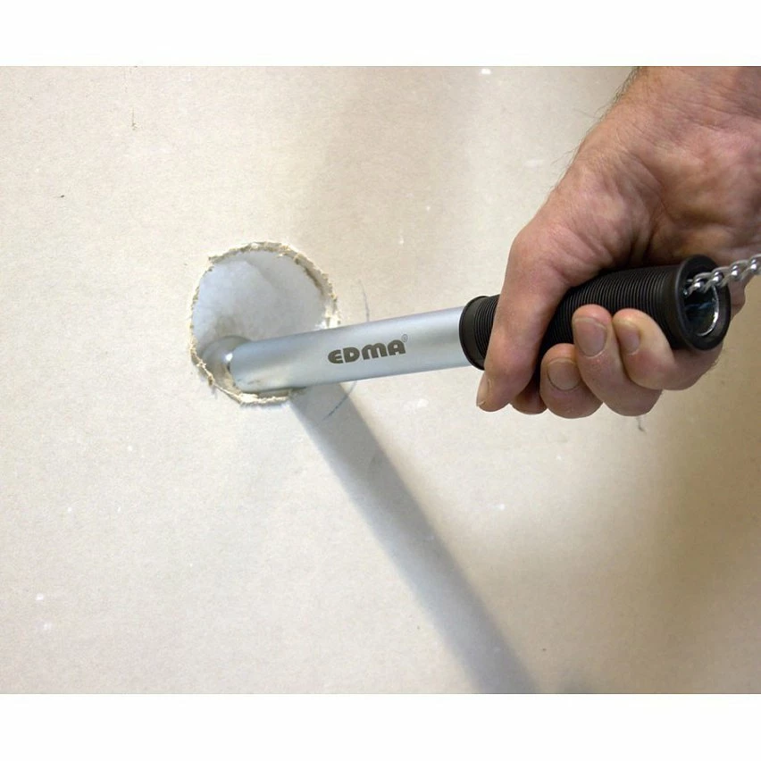 - Permet de réaliser des tranchées diamètre 40 mm dans les isolants P.S.E. derrière une cloison en plaque de plâtre sans l’endommager.