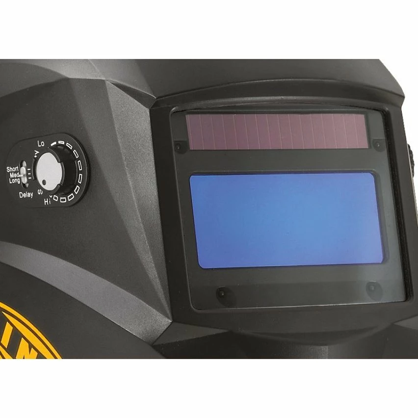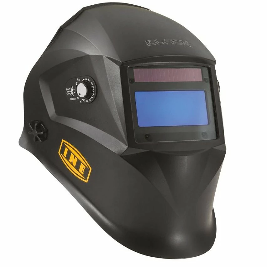 Cagoule de soudure Automatique Professionnelle BLACK de la GAMME INE Champs de vision 98 X 43 mm Réglages des teintes DIN 4-8 / 9 à 13 par molette extérieure Fonction meulage Serre-tête ajustable top confort Pour soudages CONTINUS en MMA, MIG/MAG,TIG . Protection UV jusqu’à DIN16 – Teinte claire DIN4 – Temps de réaction 1/5000 sec – 4 capteurs Classe optique 1-1-1-1 Alimentation solaire et piles ( 1 x CR2450 LITHIUM) incluses – Livrée avec Verres de rechange.