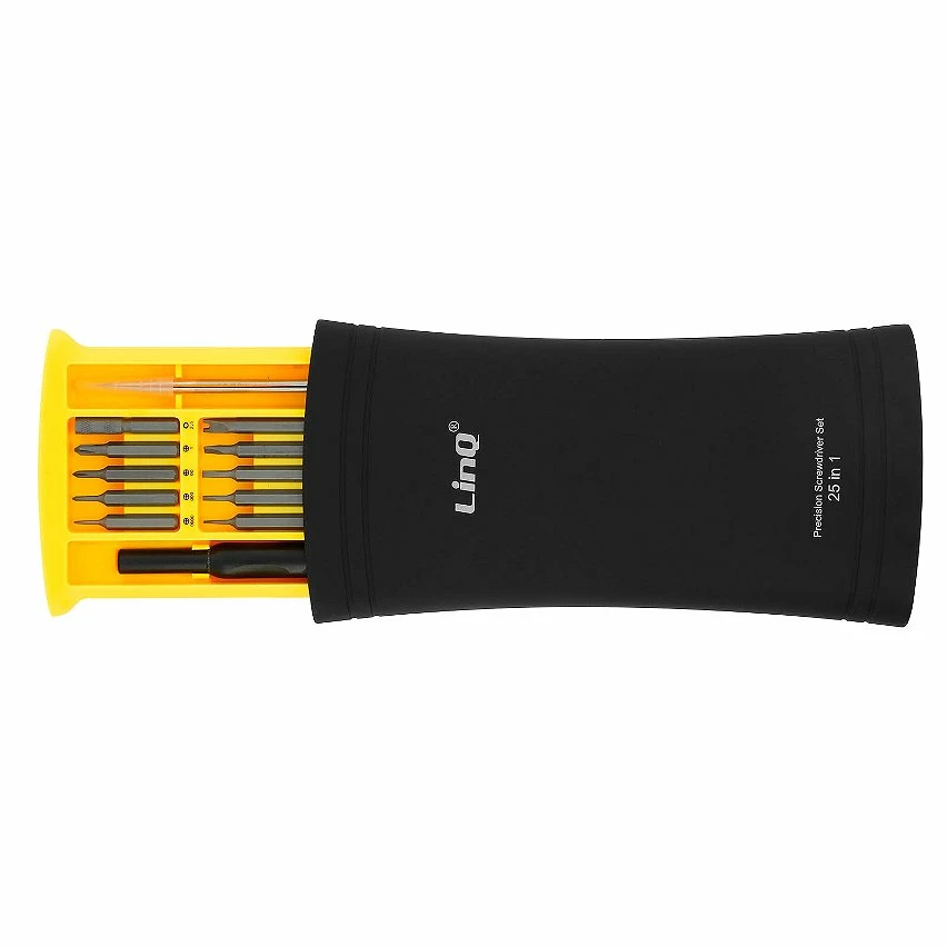 Kit de réparation 20 embouts + Tournevis magnétique + Pince pointue de la marque Linq : idéal pour les réparations de votre smartphone/PC. Conçu en matériel fiable pour une utilisation durable. Livré avec un étui compact et clipsable.