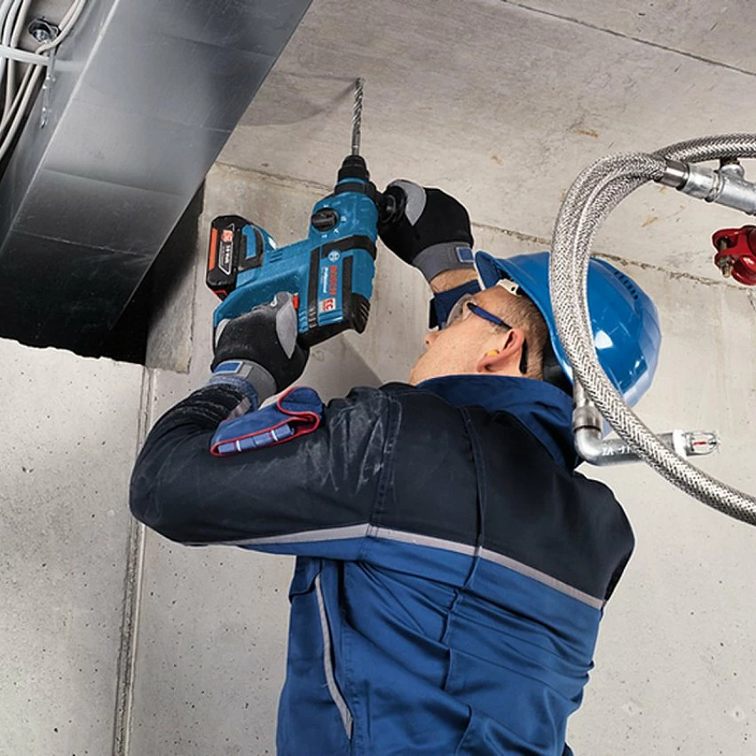Marteau Perforateur BOSCH 36V EC Compact avec une batterie lithium 1.3 Ah innovante. Moteur Bosch Brushless sans charbon compact, léger et sans entretien. Outil léger idéal pour les travaux en hauteur. Son Mécanisme de frappe pneumatique est optimisé pour les diamètres de 4 à 12 mm dans le béton (18 mm maxi). La batterie peut être chargée à tout moment sans endommager les cellules car il n’y a pas d’effet mémoire. Système ECP: protection de la batterie contre la surchauffe et la décharge totale. Système de charge rapide Turbo Charge Bosch pour une charge à 75 % dès la moitié du temps de charge. Travail sans fatigue grâce au système Vibration Control Bosch.