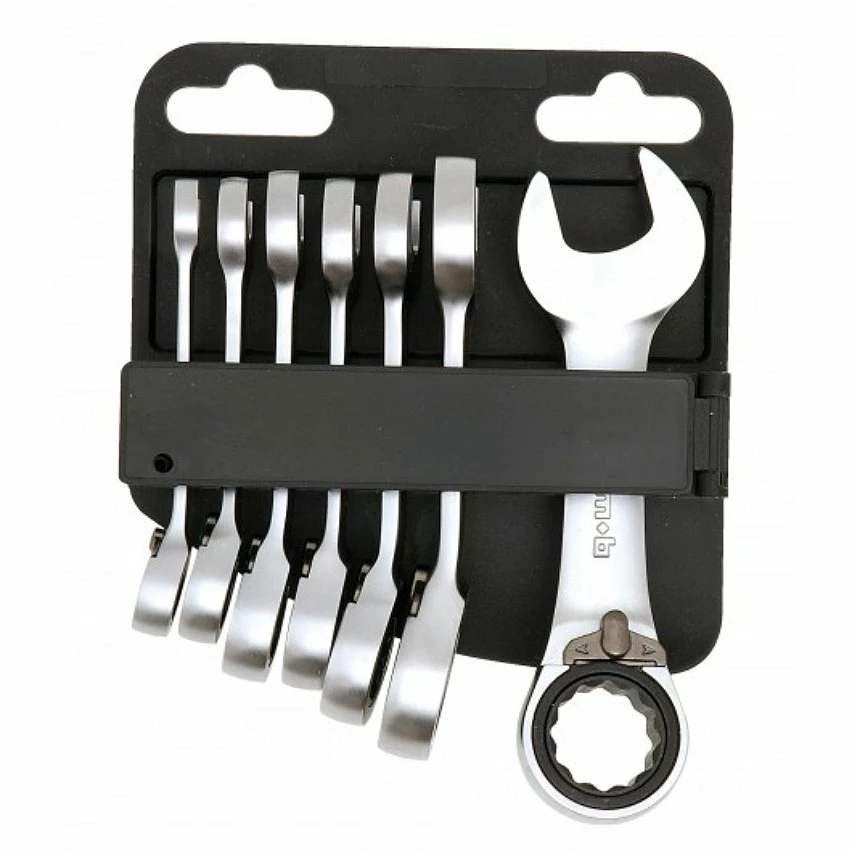 - 7 clés mixtes à cliquet courtes Compact’ : 8 – 10 – 12 – 13 – 14 – 17 – 19 mm.