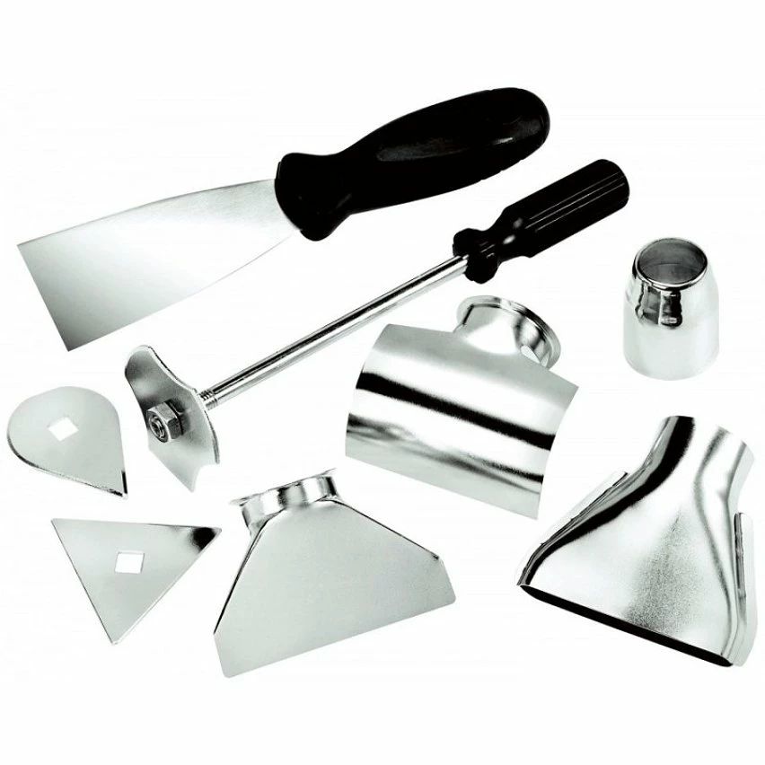 Accessoires fournis : buse réfléchissante, buse pour verre, buse large, cône de réduction, grattoir plat 50 mm, Grattoir manuel, tête polyvalente pour grattoir manuel, tête triangulaire pour grattoir manuel