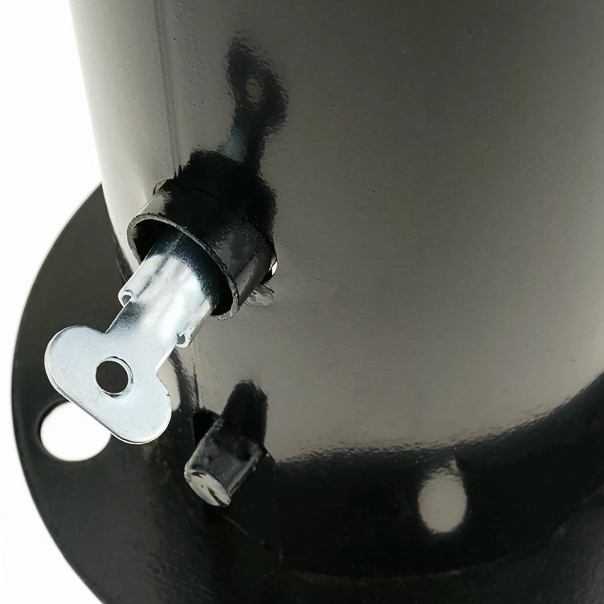 Borne ou borne métallique pour la protection et la signalisation des routes. Utilisations multiples: sécurité, signalisation routière, délimitation d’espaces, blocage d’accès, etc. Bornes de sécurité pour empêcher le vol lors de l’atterrissage. Des pylônes pour la signalisation routière, qui permettent de délimiter les espaces de circulation des véhicules. Spécifications Bornes ou bornes en métal de 3 mm d’épaisseur. Bollard modèle removible La borne peut être séparée de la base. Il a un mécanisme qui fonctionne avec une clé (une clé compatible est fournie). Poteau en métal métallisé peint en noir avec des rayures jaunes offrant une grande visibilité. Diamètre du corps central: 120 mm. Hauteur du corps central: 500 mm. Diamètre de la base: 164 mm. La base comporte 4 trous pour fixer la borne au sol à l?aide de visbagues non incluses). Diamètre des trous pour les vis: 15 mm. Anneau sur le dessus, pour fixer la chaîne, la corde, etc. Modèle de borne à fixer de manière permanente au sol.