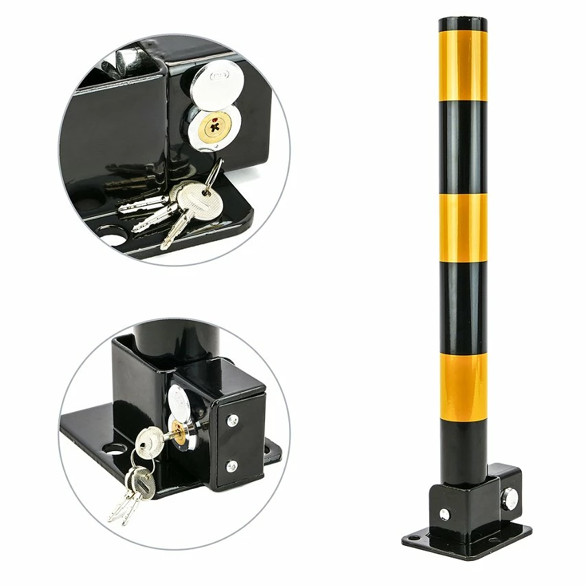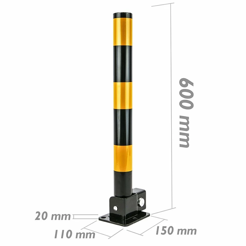 Borne ou borne en acier pour la protection de la route et la signalisation. Usages multiples: sécurité, signalisation routière, délimitation des espaces, blocage des accès, etc. Bornes de sécurité pour empêcher le vol en atterrissant. Pylônes de signalisation routière permettant de délimiter les espaces de circulation des véhicules. Spécifications Bornes ou bornes fabriquées en acier de qualité Q235 résistant. Grode la plaque d’acier de la borne: 2 mm. Poteau métallique en acier, peint en jaune et noir, avec une grande visibilité. Diamètre du corps central: 57 mm. Hauteur du corps central: 600 mm. Modèle avec une base rectangulaire (150 x 110 mm) avec 3 trous (13 mm) pour la fixation au sol à l’aide de vis ou d’ancrages. La borne pivote par rapport à la base, passant de la positionrical à horizontal. En position verticale ne permet pas le passage des véhicules. En position horizontale si elle permet le passage des véhicules. Il a un verrou intégré sur la borne, pour contrôler le mécanisme de verrouillage. Il n’est pas nécessaire d’avoir des cadenas séparément. 3 clés de sécurité sont fournies.