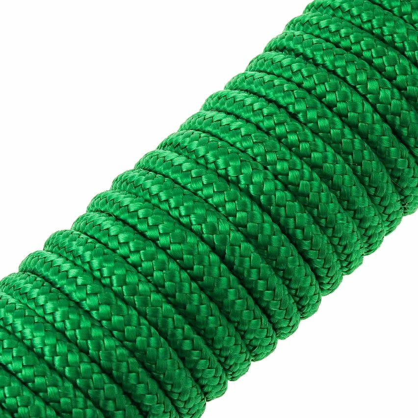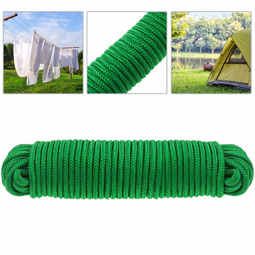 La corde tressée multifilament PP est composée de plusieurs filaments de polypropylène 100% haute ténacité. Ces types de cordes ont une bonne résistance chimique et une résistance moyenne à l’abrasion. C’est une corde flottante, douce et lisse, plus légère que le polyester. Il a une bonne résistance aux rayons UV. Spécifications Pelote de corde tressée multifilament polypropylène Longueur: 20 m. Section: Ø 6 mm. Construction: tresse 16 brins. Couleur verte. Charge de rupture: 300 kg. Applications: décoration, cordes à linge, bâches, bannières, bricolage, camping, jardinage, industrie, agriculture et nautique.