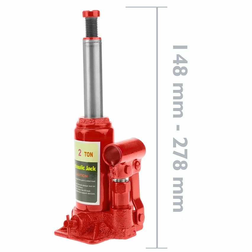 Cylindre hydraulique qui permet de soulever tous types de charges lourdes. Construction solide en matériau de haute résistance. Livré avec levier divisé en deux parties pour faciliter le transport. Pour lever les charges, il vous suffit d’actionner le levier à plusieurs reprises. Pour réduire les charges, il suffit d’activer le ressort de la base, ce qui libère la pression des fluides intérieurs. Spécifications Cric hydraulique de bouteille qui permet de soulever tous types de charges jusqu’à 2 Tm. Construction solide en matériau de haute résistance. Hauteur minimale: 148 mm. Hauteur de levage: 80 mm. Hauteur ajustable: 50 mm. Hauteur maximale: 278 mm. Livré avec levier divisé en deux parties pour faciliter le transport. Pour lever les charges, il vous suffit d’actionner le levier à plusieurs reprises. Pour réduire les charges, il suffit d’activer le ressort de la base, ce qui libère la pression des fluides intérieurs. Taille (largeur x profondeur x hauteur): 86 x 92 x 148 mm.