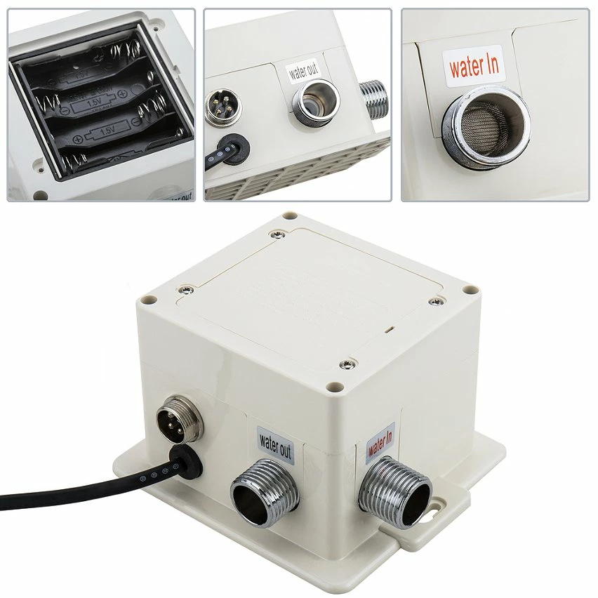 Robinet qui fonctionne automatiquement. Son capteur infrarouge intégré vous permet d’ouvrir ou de fermer le débit d’eau sans le toucher, ce qui le rend idéal pour maximiser les mesures d’hygiène à la maison, restaurants, centres commerciaux, aéroports, hôtels, bureaux, usines, centres de santé, écoles, etc. Robinet automatique, en alliage de zinc, design élégant et moderne. Il réduit au maximum la consommation d’énergie et d’eau, et évite les éventuelles pertes dues au fait de laisser le robinet ouvert. spécifications Robinet avec ouverture et fermeture automatiques du débit d’eau avec capteur de détection de proximité. Il n’est pas nécessaire de toucher le robinet car il fonctionne en détectant vos mains sous le distributeur d’eau. Cela s’éteindra automatiquement après le retrait, minimisant la consommation d’eau et les fuites possibles. Cela fonctionne en se connectant au courant électrique. En cas de panne de courant, le robinet peut fonctionner de manière autonome au moyen de 4 piles AA 1,5 V (non incluses) qui sont logées dans le compartiment de la vanne. La vanne électronique comprend une entrée et une sortie d’eau pour un tuyau mâle de 1/2 « . Un tuyau de 48 cm est inclus pour le raccordement du robinet à la soupape. Distance de détection approximative du capteur infrarouge 30 cm. Tension d’entrée 220V. Fonctionnement 6VDC. Diamètre de raccordement du robinet: 8 mm. Hauteur de raccordement du robinet: 45 mm. Possibilité de mélanger l’eau chaude et froide à l’aide d’un mitigeur (non inclus).