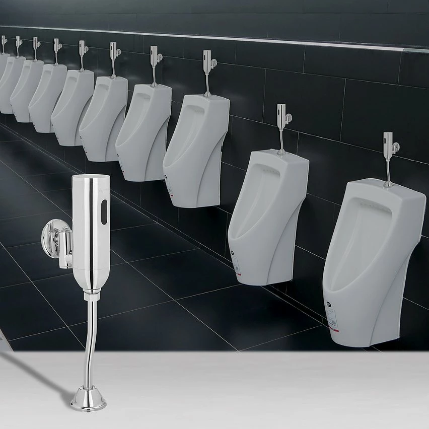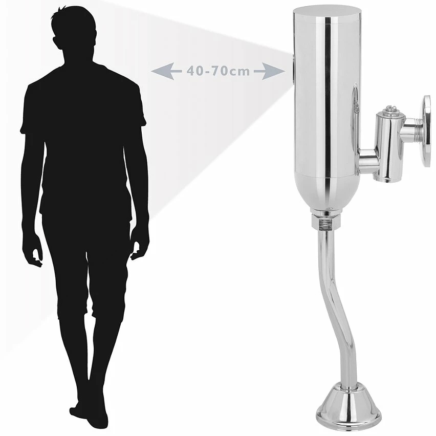 Robinet de chasse automatique pour urinoirs. Son capteur à induction infrarouge permet d’ouvrir ou de fermer le débit d’eau sans avoir à toucher les boutons. Valve automatique en laiton avec une finition chromée brillante, de conception élégante et moderne. Le capteur permet de contrôler le rinçage en fonction de la fréquence d’utilisation, de réduire au maximum la consommation d’énergie et d’eau, et de maximiser les mesures de désinfection et d’hygiène. Idéal dans les toilettes des restaurants, centres commerciaux, aéroports, hôtels, bureaux, usines, centres de santé, écoles, etc. spécifications Robinet de chasse d’eau pour toilettes avec capteur infrarouge, qui permet l’ouverture et la fermeture automatiques du débit d’eau sans avoir à toucher les boutons. De cette manière, le contact avec les toilettes est évité pour une meilleure hygiène. Si la vanne détecte l’utilisateur pendant 3 secondes, elle effectue son premier rinçage de 2 secondes. Le deuxième rinçage a lieu 10 secondes plus tard et dure 4 à 6 secondes, optimisant la consommation d’eau. En fonction du temps d’utilisation des toilettes, la vanne rince à intervalles réguliers pour protéger l’équipement. En cas de mauvaises performances, il effectue une décharge automatique toutes les 24 heures, évitant l’infection de bactéries. Vanne d’installation simple en laiton avec une finition chromée brillante. Idéal pour les urinoirs muraux. Le dispositif comprend une valve électronique avec une buse de 1/2″ de diamètre et un tube pour la sortie d’eau. Distance de détection approximative du capteur infrarouge: 40-70 cm. Il fonctionne avec 4 piles alcalines AA (non incluses).