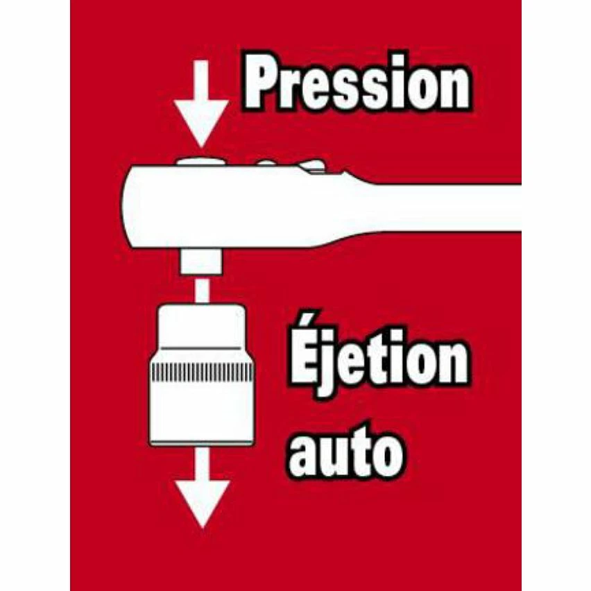 Manche bi-matière antidérapantBouton déjection des douillesClé à cliquet réversible 1/4 – 72 dents, longueur 140 mm -