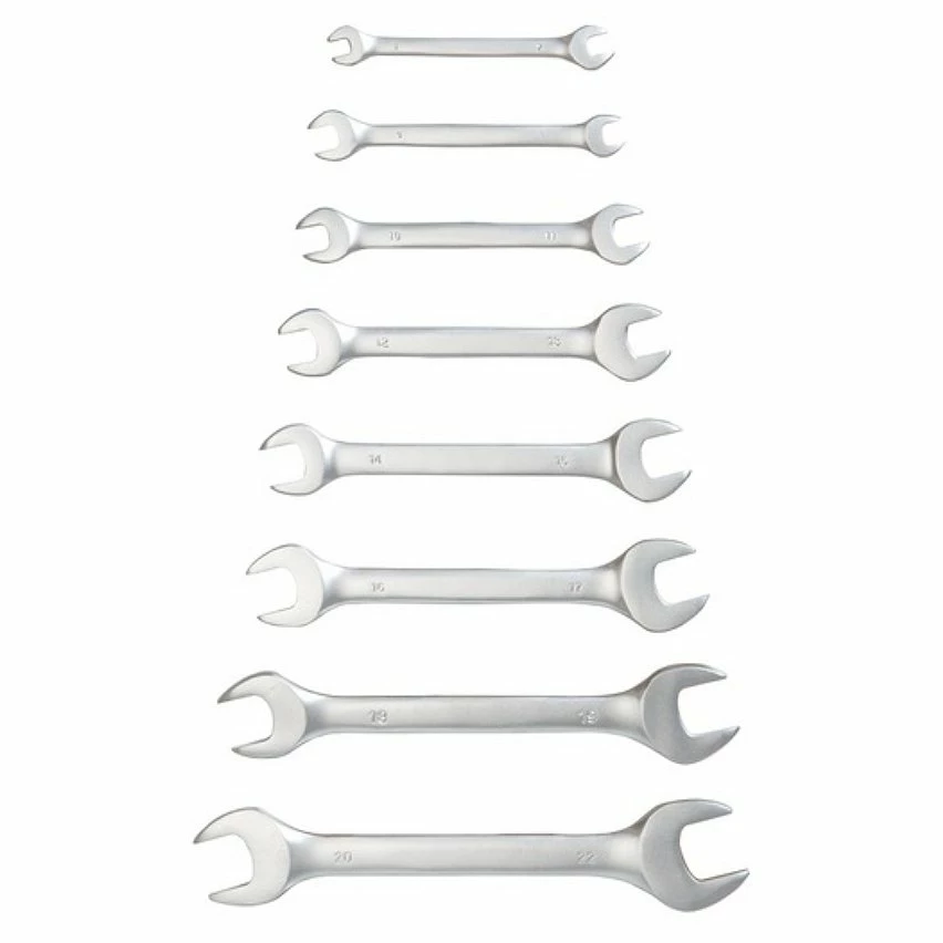- Jeu de 8 clés plates en acier forgé chromé vanadium, finition satinée