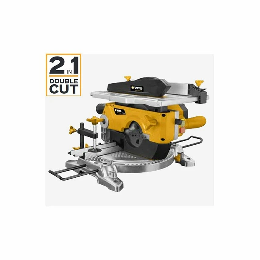 Combiné professionnel haut de gamme VITO doté de deux position de coupe , type onglet et d’une position sciage de table .Plateau haute qualité en aluminium orientable très facilement. Lame de coupe de 210mm alésage 30mm et 24 dents. Vitesse de rotation du disque: 4200 tr/min. Position onglet réglage de l’inclinaison de la découpe jusqu’à 45°. Position table scie circulaire coupe 30-55 mm. Corps de l’appareil en aluminium haute fiabilité.