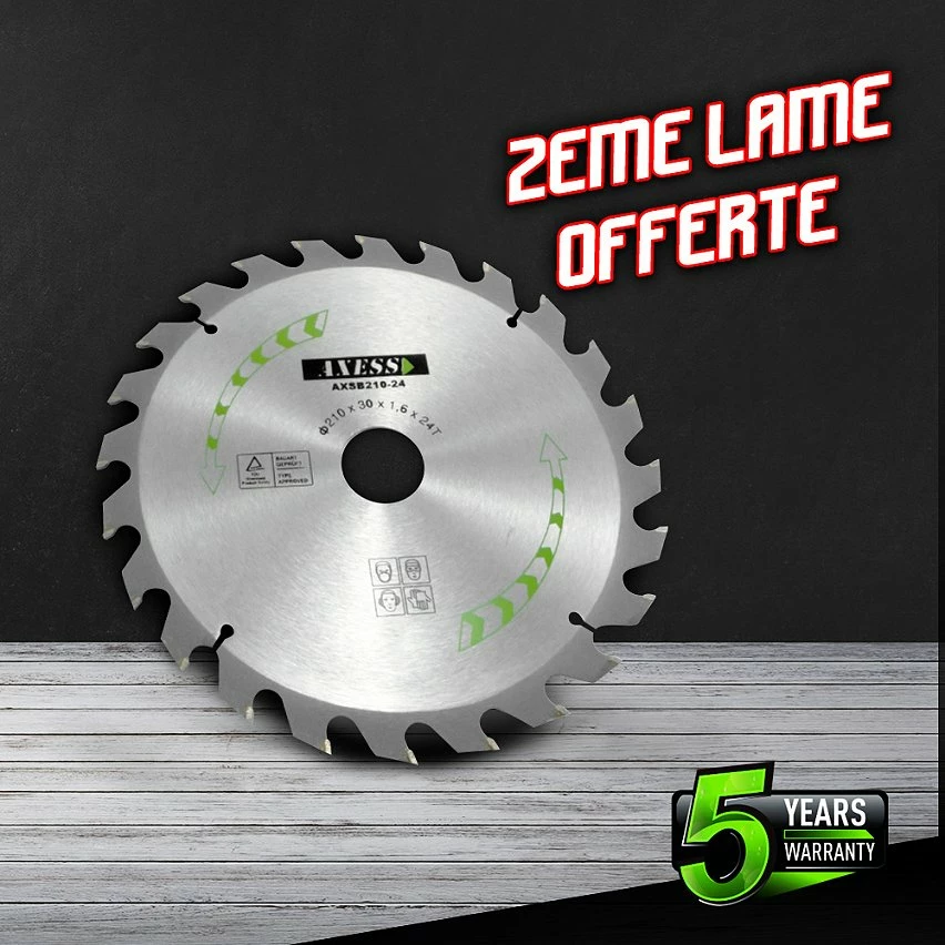 – Livré avec une deuxième lame 210 mm (24 dents)