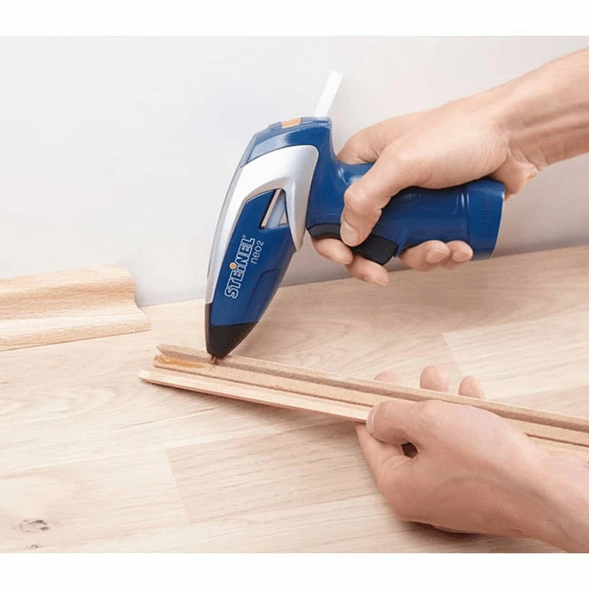 Ce robuste pistolet à colle thermofusible sans fil neo2 de la marque Steinel est une aide indispensable dans l’atelier, le garage et la maison.