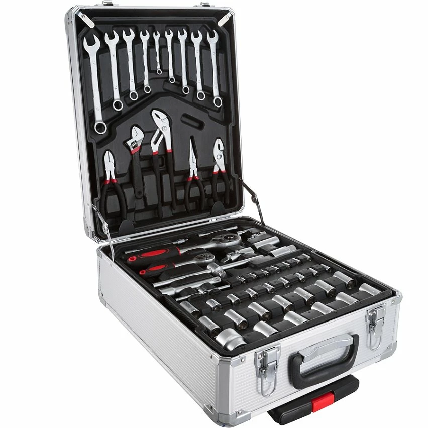 Boîte à Outils Coffret Outillage Main 599 Pièces en Aluminium TECTAKE . • Notre coffret à outils est le compagnon idéal pour tous vos travaux, que ce soit dans le garage, dans l’atelier ou à la maison. • Sur 4 Niveaux différents, vous disposez d’une large gamme d’outils courants tels que des tournevis, des clés à fourche, des pinces et même un pistolet à colle chaude. • Grâce aux roues souples et à la poignée de transport réglable, notre mallette à outils en aluminium est parfaitement adaptée au transport. • Toujours mobile et opérationnel – grâce à notre boîte à outils complète vous avez toujours un équipement de base solide à portée de main.