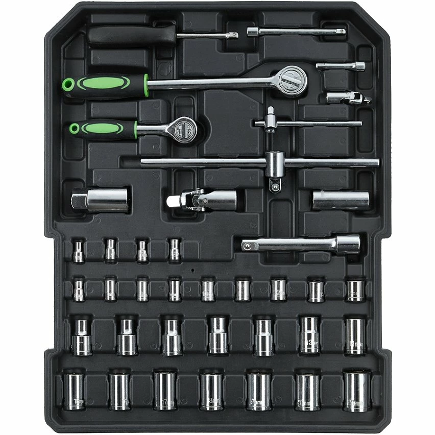 - 14 Douilles ½ pouce (21, 20, 19, 18, 17, 16, 15, 14, 13, 12, 11, 10, 9, 8 mm).