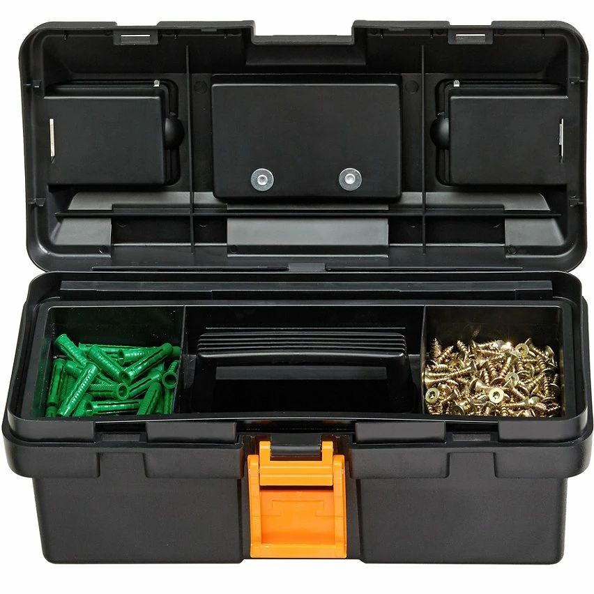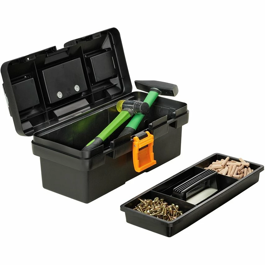 Notre caisse à outils DWAYNE tectake est le compagnon idéal pour tous les travaux de bricolage à la maison. L’insert amovible segmenté et les deux compartiments pour petites pièces (vis, clous, boulons…) sur le dessus offrent beaucoup d’espace de rangement, idéal pour une vue d’ensemble excellente de tous vos outils. Le boîte à outils robuste en plastique s’ouvre facilement et se verrouille hermétiquement. Enfin, vous pouvez transporter facilement la mallette à outils compacte grâce à sa grande poignée.