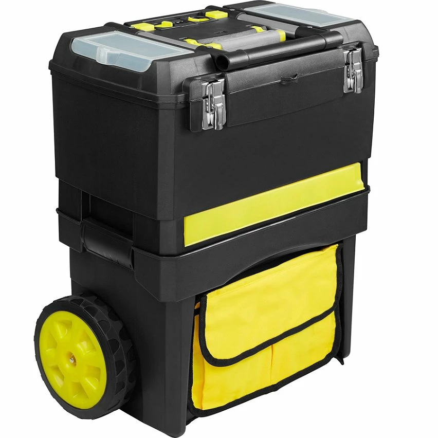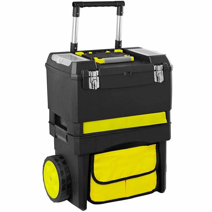 Notre chariot à outils fonctionnel tectake offre un grand espace de rangement et une excellente organisation sur deux niveaux. Les grandes roues et la poignée télescopique permettent de transporter facilement cette caisse à outils. La partie supérieure portative peut être détachée et utilisée seule. La partie inférieur quant à elle accueille le rangement d’outils plus volumineux. Ce chariot facile à entretenir est doté de coins arrondis ainsi que d’une possibilité de fixer un cadenas pour empêcher l’accès aux enfants et les accidents domestiques.