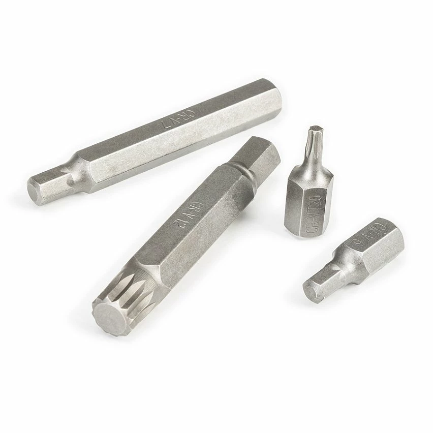 - Embouts à six pans creux 10 mm : 4, 5, 6, 7, 8, 10, 12 mm (30 mm) ; 4, 5, 6, 7, 8, 10, 12 mm (75 mm).