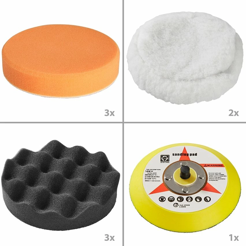 - 3 Eponges de polissage moyennes 150 mm (Idéal pour les produits lustrants. Supprime les hologrammes. Très bons résultats sur les laques foncées et effritées).