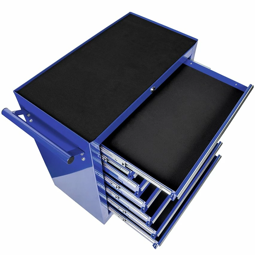 Servante d’Atelier Chariot à Outils avec 7 Tiroirs 69 cm x 33 cm x 79 cm TECTAKE. Voici le compagnon idéal de votre atelier ! Vous pouvez y ranger chaque outil à sa place et le retrouver facilement ! Le chariot à outils dispose de 7 tiroirs spacieux, verrouillables et montés sur des glissières à billes. Qu’il soit utilisé dans un atelier professionnel ou pour du bricolage, ce système de rangement vous est toujours utile. La serrure empêche l’ouverture des tiroirs pendant un trajet et protège contre tout accès non autorisé. Les tiroirs et le plateau de ce chariot revêtu par poudre sont équipés de tapis antidérapants. 4 Roues stables facilitent les manœuvres et permettent une utilisation mobile.