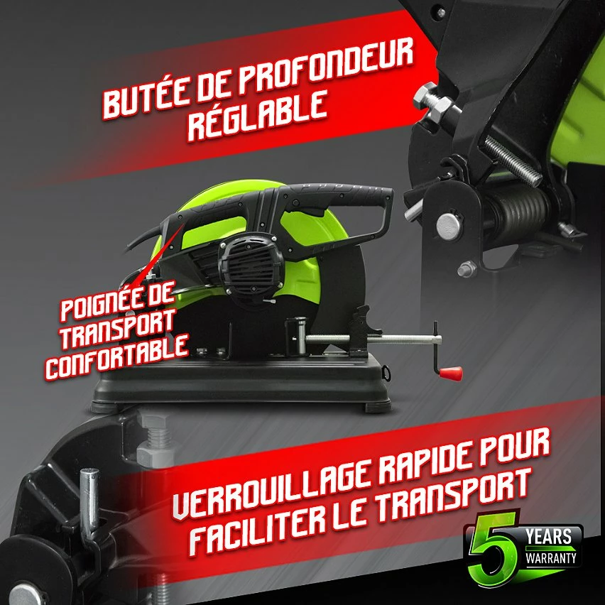 Cette tronçonneuse à métaux 2300W de la marque Constructor est idéale pour la découpe d’appoint sur métaux et matériaux dans le domaine de la métallurgie, plomberie, mécanique… Elle a été conçue pour offrir un maximum de confort d’utilisation et de sécurité à l’utilisateur. Cette tronçonneuse à métaux dispose d’un disque de 355 mm de diamètre. Grâce à son étau de serrage, elle vous assure un travail parfait et en toute sécurité.