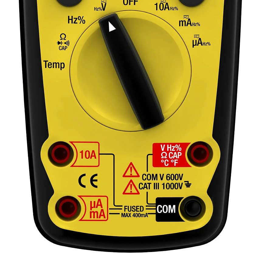 Le BE50 a une finition de qualité. L’appareil et les cordons de mesure ont une double isolation et sont conformes à la classe de protection II. Avec un indice de protection IP67, ce multimètre est extrêmement résistant aux chocs et absolument étanche à la poussière et à l’eau. Il est donc parfaitement adapté aux conditions d’utilisation les plus rudes.
