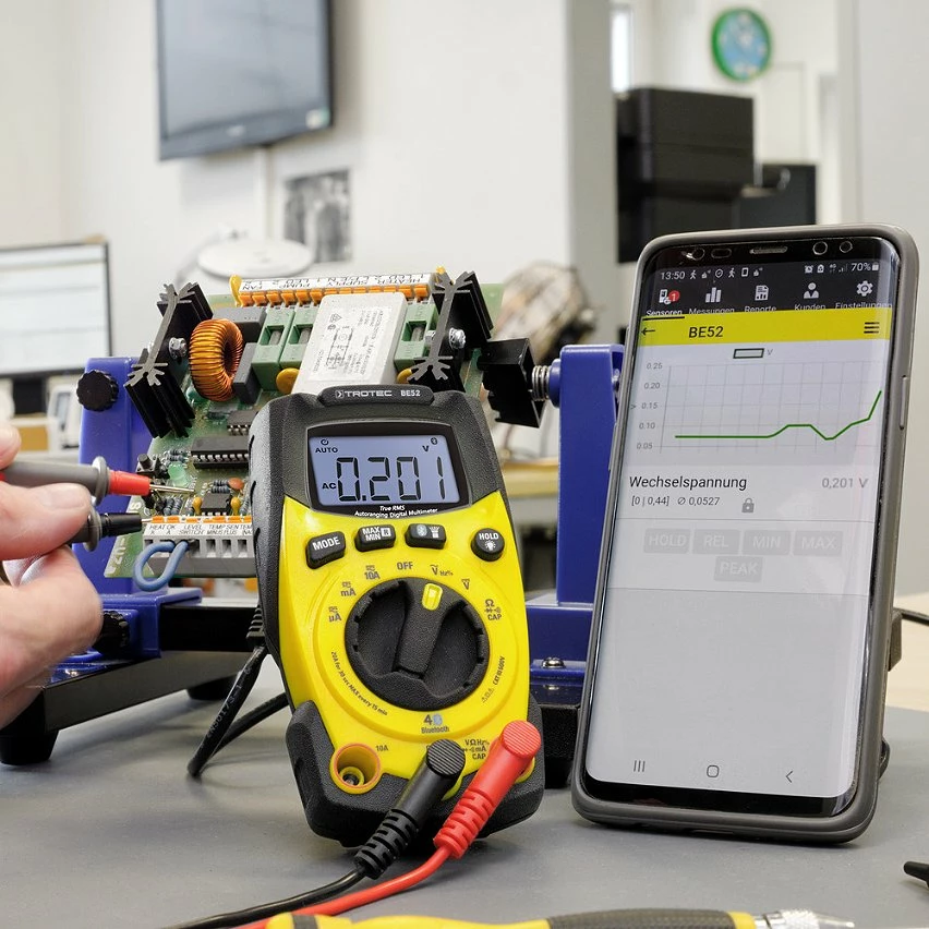 La combinaison du BE52 et du logiciel d’évaluation professionnel MultiMeasure Mobile permet d’obtenir à tout moment des informations rapides et fiables sur les mesures d’électricité – y compris de nombreuses options d’analyse, comme par exemple la fonction d’enregistrement pour les mesures de longue durée, les évaluations graphiques, la fonction de rapport et la synchronisation des données avec notre logiciel professionnel MultiMeasure Professional via le cloud.