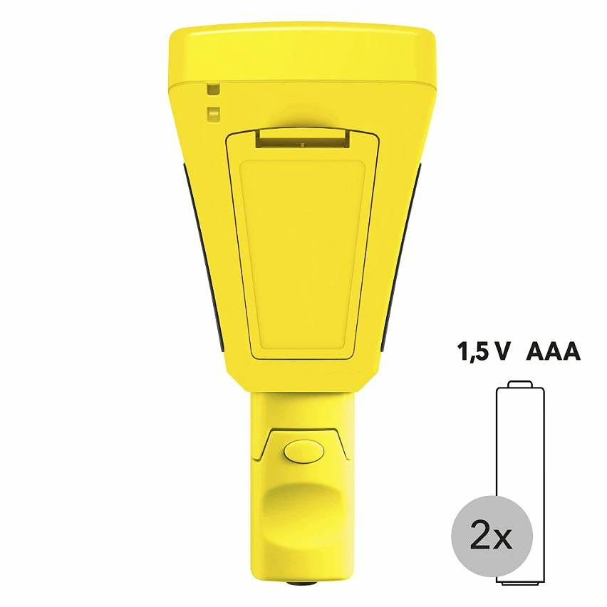 La sonde de mesure sur ressort est équipée d’une encoche en V de façon à pouvoir mesurer sur des surfaces incurvées sans bouger, par exemple au niveau d’essieux ou de charnières.