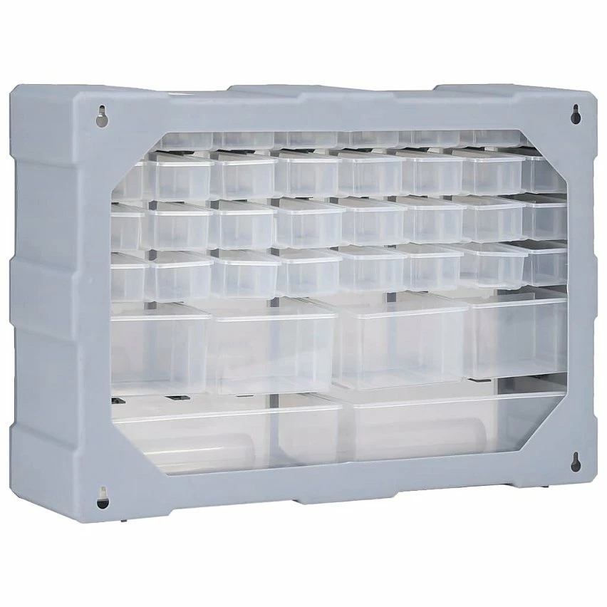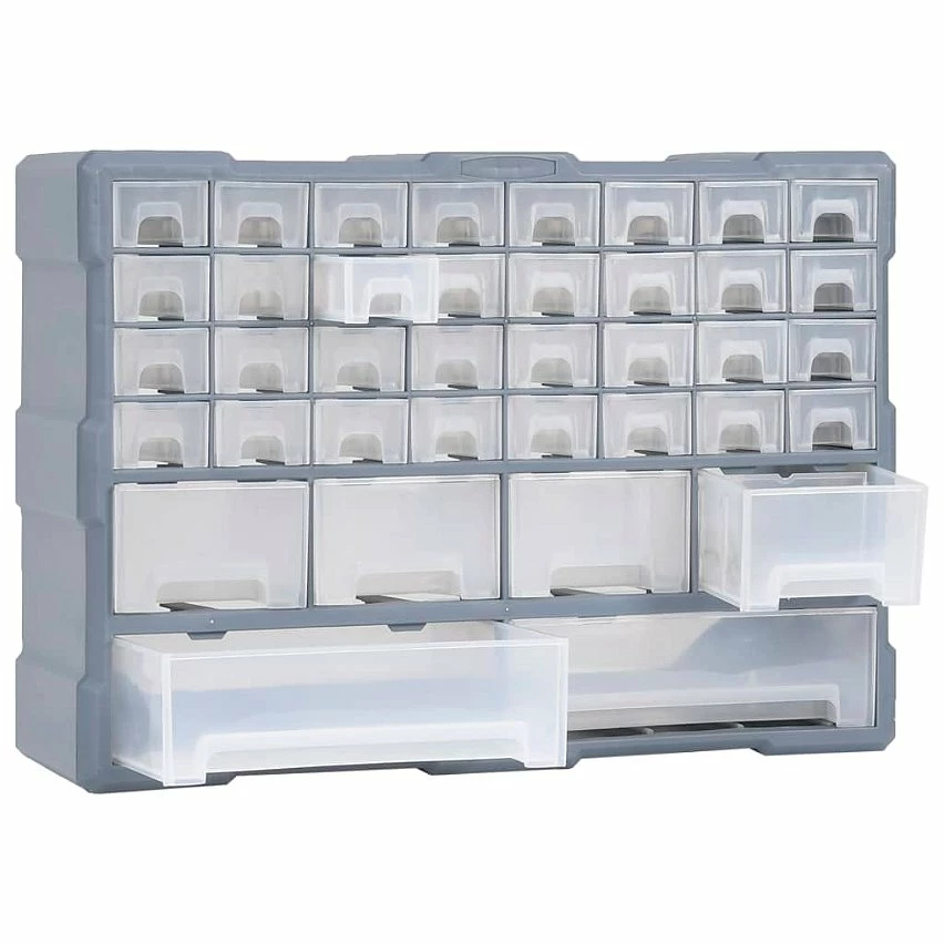 Ce meuble de rangement contient 34 petits tiroirs, 4 tiroirs de taille moyenne et 2 grands tiroirs pour répondre à vos différents besoins. Il garde vos outils à main et accessoires comme les fixations organisés et à portée de main. L’armoire à outils est fabriquée en plastique résistant aux chocs, qui est à la fois durable et stable. Les tiroirs sont en plastique transparent afin que vous puissiez identifier rapidement le contenu. Cette boîte de bricolage est idéale pour ranger les écrous, les boulons, les vis, les clous, les fixations générales et les composants.