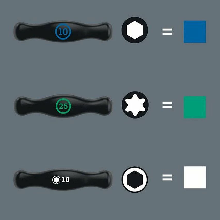 SET de tournevis à poignée transversale de 10 pièces pour les applications sur vélo : la forme de poignée idéale permet la transmission de couples de serrage et de résolution particulièrement élevés. La forme ergonomique de la poignée remplit bien les mains, les doigts se trouvent dans le creux de la poignée légèrement arrondie.