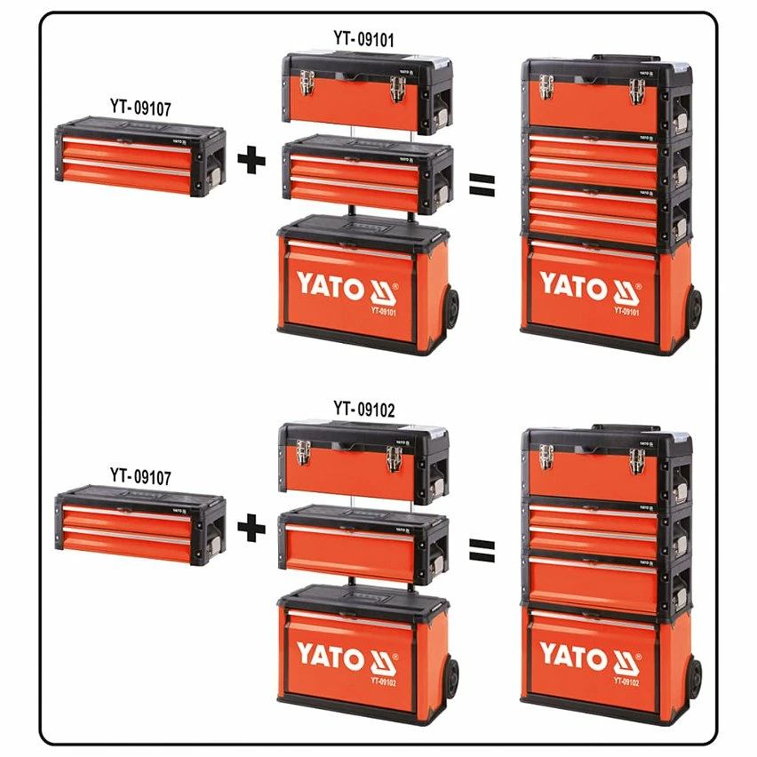 Cette boîte à outils modulaire de la marque YATO est parfaite pour organiser vos outils d’atelier. Elle dispose de 2 tiroirs en métal, chacun avec une capacité de charge de 5 kg et des dimensions intérieures de 39 x 21,5 x 6 cm.