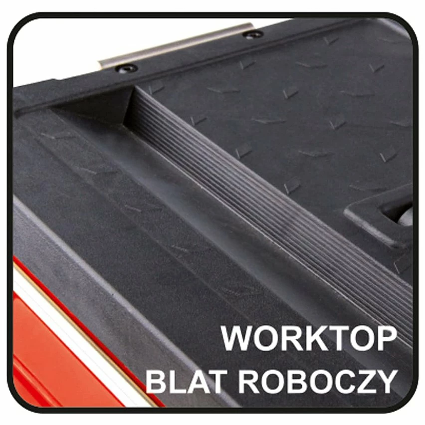 Les tiroirs sont montés sur glissières métalliques avec roulements à billes. Ce module de boîte à outils a un dessus plat qui peut être utilisé comme plan de travail. De plus, une rainure a été incluse pour percer ou visser des vis. Le module est doté de poignées confortables et antidérapantes pour un levage facile et des coins inférieurs antidérapants.